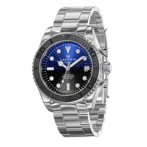 3. LANDWIN Herren Armbanduhr Automatik Taucheruhr Edelstahlarmband Analog wasserdicht Uhr Automatikwerk Herrenuhr wasserdicht 100M